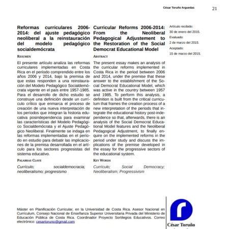 REFORMAS CURRICULARES 2006-2014: DEL AJUSTE PEDAGÓGICO NEOLIBERAL A LA REINSTAURACIÓN DEL MODELO PEDAGÓGICO SOCIALDEMOCRATA.